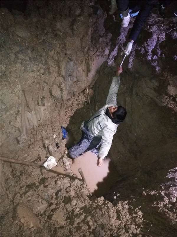 晚上6點(diǎn)30分,水電中心的搶修電話(huà)突然響起,位于農(nóng)場(chǎng)的于沈居民點(diǎn)一條供水管道被凍裂,大面積停水。水電中心主任江堯忠第一反應(yīng),“這是一條供水主管網(wǎng),如果搶修不及時(shí),必定會(huì)導(dǎo)致居民生活用水無(wú)法正常使用,必須盡快搶修好。”按照制定的應(yīng)急預(yù)案,帶著搶修工人冒著嚴(yán)寒立即趕往搶修現(xiàn)場(chǎng)。由于地面凍層比較厚,搶修人員先使用破碎錘將地面破開(kāi),把積水排出去,然后使用專(zhuān)用接頭把漏水點(diǎn)封住,在最短時(shí)間內(nèi)對(duì)漏水管道進(jìn)行搶修,站在冰冷的水中凍的直打哆嗦,大家都咬牙堅(jiān)持,經(jīng)過(guò)近3個(gè)小時(shí)的努力搶修,漏水管線得以修復(fù),恢復(fù)了正常供水。