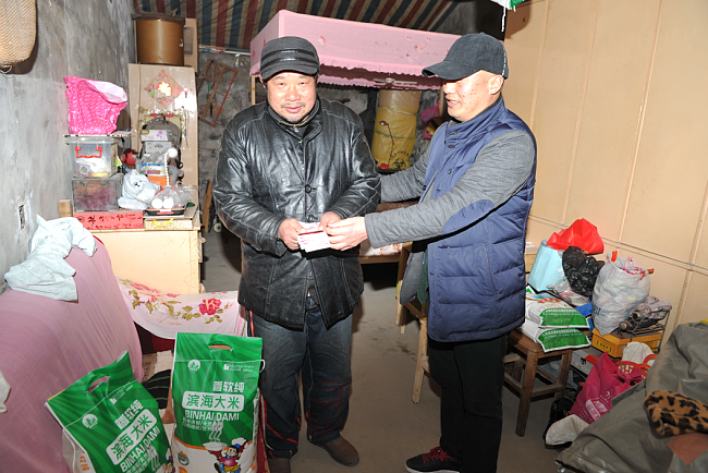 原來,陸同林是農(nóng)場轉(zhuǎn)崗職工,通過自謀職業(yè),從事個體經(jīng)營業(yè)務。有著濃厚軍墾情結的他,在兩天前特地找到臧成龍,想通過他了解,并在年前資助兩戶貧困戶的想法。