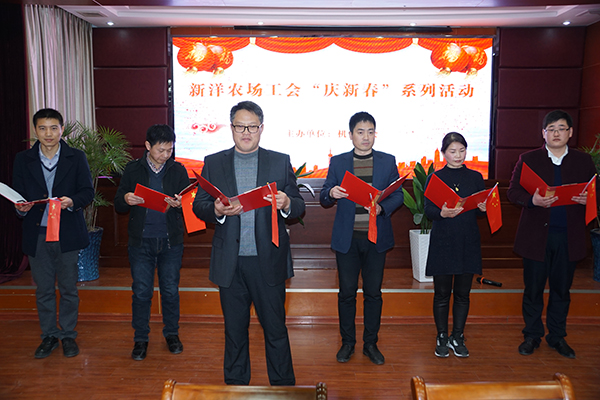 鞭炮聲聲辭舊歲,張燈結(jié)彩迎新年。2月11日下午,新洋農(nóng)場(chǎng)工會(huì)組織開(kāi)展才藝展示、摜蛋比賽、現(xiàn)場(chǎng)抽獎(jiǎng)等“慶新春”系列活動(dòng)。黨委書(shū)記陳守軍,場(chǎng)長(zhǎng)潘元海,紀(jì)委書(shū)記、工會(huì)主席戴學(xué)林,財(cái)務(wù)總監(jiān)謝翠英,場(chǎng)長(zhǎng)助理王煜明出席活動(dòng)現(xiàn)場(chǎng)并全程參與,機(jī)關(guān)全體工作人員參加了活動(dòng)。