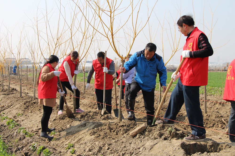 大家自帶工具,分工合作,有的扶樹、有的培土、有的踩實、有的澆水,還有的運(yùn)送樹苗、化肥;整個活動現(xiàn)場雜而不亂,有條不紊,志愿者們一個個干勁十足,將一棵棵充滿生機(jī)與希望的樹苗植入泥土中。