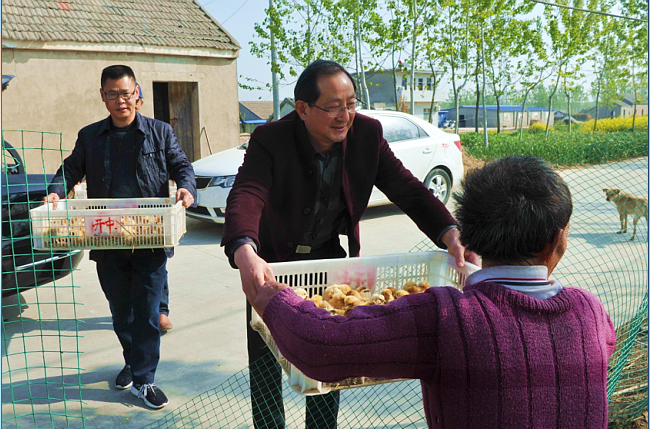 4月18日一大早,淮海農(nóng)場有限公司工會負(fù)責(zé)人和結(jié)對掛鉤精準(zhǔn)幫扶干部等一行,帶著300多只草雞雞苗來到了四分場社區(qū)三十五大隊(duì)精準(zhǔn)幫扶對象戶王春梅的門前,通過扶貧扶志幫創(chuàng)業(yè)的形式,免費(fèi)送給貧困戶王春梅的丈夫飼養(yǎng),意在以產(chǎn)業(yè)扶貧的方式,幫助她的家庭走出困境。