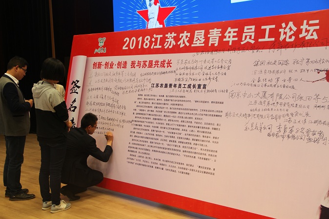 此次論壇活動取得了建設性成果,與會全體青年員工代表認真審議并通過了《江蘇農墾青年員工成長宣言》,姚準明、佟曉廷以及與會全體青年員工在成長宣言簽名墻、簽名簿上鄭重的簽下了自己的名字。論壇的成功舉辦,充分體現(xiàn)了集團公司黨委對青年員工的關愛和培養(yǎng),必將使軍墾文化、農墾精神薪火傳承;必將增強青年員工對農墾的認同感、歸屬感、榮譽感;必將更加堅定青年員工立志獻身農墾、扎根農墾、建設農墾的信心;必將促使青年員工在新時代更加愛崗敬業(yè)、成長成才。作為新時代的江蘇農墾青年,紛紛表示一定以“勇?lián)鷼v史使命,勇立時代潮頭”為己任,不忘初心,牢記使命,砥礪前行,久久為功,為加快建設一流現(xiàn)代農業(yè)企業(yè)集團和實現(xiàn)“百年蘇墾”的農墾夢貢獻自己的青春、智慧和力量,與時代同奮進,與農墾共輝煌!