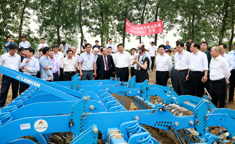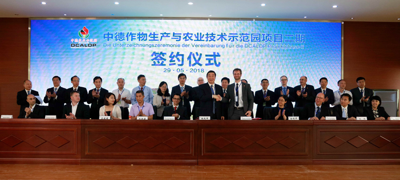 5月29日,中德作物生產(chǎn)與農(nóng)業(yè)技術(shù)示范園第四屆“田間日”活動(dòng)暨項(xiàng)目二期簽約儀式在蘇墾農(nóng)發(fā)黃海分公司舉行。集團(tuán)公司總經(jīng)理、蘇墾農(nóng)發(fā)股份公司董事長胡兆輝出席并代表蘇墾農(nóng)發(fā)股份公司與與德國GFA咨詢集團(tuán)有限公司項(xiàng)目經(jīng)理安德列斯•伽木措先生及德國9家合作企業(yè)代表簽約。集團(tuán)公司紀(jì)委書記章朝陽出席并觀摩田間活動(dòng)。集團(tuán)公司黨委委員、蘇墾農(nóng)發(fā)股份公司總裁蘇志富致辭。德國聯(lián)邦食品與農(nóng)業(yè)部國際合作與世界營養(yǎng)司副司長弗里德里希•瓦克行先生、中國農(nóng)業(yè)農(nóng)村部國際合作司歐洲處副處長劉江女士分別講話。中德示范園主任王亦勤主持并與示范園德方負(fù)責(zé)人托馬斯•伊利斯分別從中德雙方不同的角度做一期成果匯報(bào)與二期項(xiàng)目規(guī)劃展望黃海農(nóng)場有限公司董事長、總經(jīng)理單祥忠等出席會(huì)議。