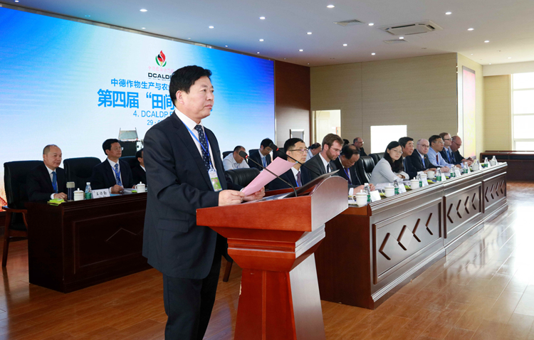 蘇志富在致辭中向中德雙方政府領(lǐng)導(dǎo)、農(nóng)業(yè)專家、項(xiàng)目合作企業(yè)及社會(huì)各界人士表示最衷心地感謝!要求項(xiàng)目二期繼續(xù)秉承“合作創(chuàng)新、成就未來”的發(fā)展理念,緊緊圍繞“綠色、有機(jī)、生態(tài)”農(nóng)業(yè)的可持續(xù)發(fā)展目標(biāo),建立起中德作物生產(chǎn)與農(nóng)業(yè)技術(shù)合作創(chuàng)新平臺(tái)、中德農(nóng)機(jī)農(nóng)藝培訓(xùn)中心平臺(tái)和中德合作機(jī)械化示范基地。
