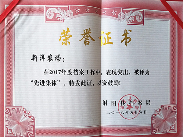 日前,射陽縣檔案局傳來喜訊,新洋農(nóng)場有限公司榮獲射陽縣2017年度檔案管理工作“先進集體”稱號,檔案管理員高娟愛榮獲2017年度檔案工作“先進個人”。