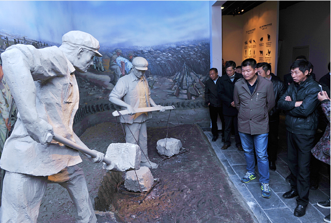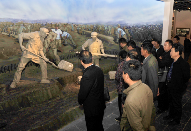 在新征程中勿忘“大鍬、扁擔”,就是要求我們要接過軍墾先輩們的精神接力棒,以腳踏實地的干勁,以舍我其誰的擔當,來為了讓更多的職工群眾能過上美好幸福生活的向往。特別是在時下廣泛開展的“不忘初心、牢記使命”的主題教育中,更需要我們深入貫徹黨的十九大精神,牢固樹立以人民為中心的思想,一切為了人民,一切依靠人民,唯有這樣,我們才能在新征程的道路上,無往而不勝。圖為客人們在農(nóng)建四師陳列館中觀看以江希友和仇泉原型創(chuàng)作的“江大鍬”和“仇大筐”雕塑模型。