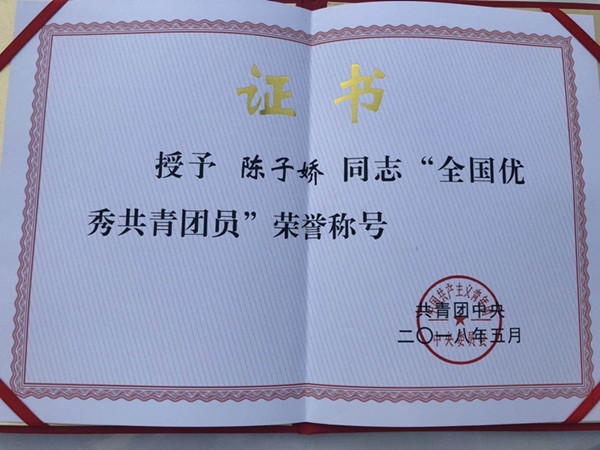 近日,云臺(tái)農(nóng)場(chǎng)有限公司共青團(tuán)員陳子?jì)色@“全國(guó)優(yōu)秀共青團(tuán)員”榮譽(yù)稱號(hào),這是共青團(tuán)中央授予團(tuán)員個(gè)人的最高榮譽(yù),陳子?jì)沙蔀樵婆_(tái)農(nóng)場(chǎng)歷年來唯一獲此殊榮的共青團(tuán)員。