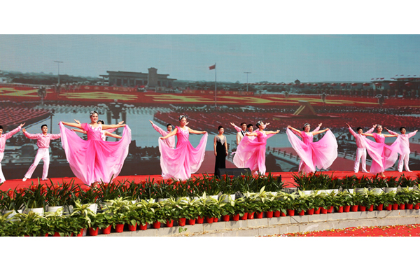 祥云漫涌,彩旗飄舞,氣球高懸,鼓號(hào)喧天,上午的振興廣場(chǎng)上處處歡聲笑語(yǔ),共同匯聚成了歡樂(lè)的海洋,電子屏上寫(xiě)有“慶祝改革開(kāi)放40周年暨崗埠農(nóng)場(chǎng)建場(chǎng)60周年”的大字格外醒目。省農(nóng)墾集團(tuán)公司、連云港市海州區(qū)委、區(qū)政府等領(lǐng)導(dǎo)應(yīng)邀參加了慶典活動(dòng),兄弟農(nóng)場(chǎng)和相關(guān)單位的領(lǐng)導(dǎo)也來(lái)到了,還有部分老知青代表,他們帶著對(duì)第二故鄉(xiāng)的深情厚誼和聲聲祝福從鎮(zhèn)江、南京、徐州等地特意趕來(lái),聞?dòng)嵍鴣?lái)的農(nóng)場(chǎng)職工、家屬、孩子也來(lái)到了慶祝大會(huì)現(xiàn)場(chǎng),大家共同見(jiàn)證這一激動(dòng)人心的時(shí)刻,每個(gè)人臉上洋溢著幸福的笑容,大家都沉浸在節(jié)日的歡樂(lè)之中。