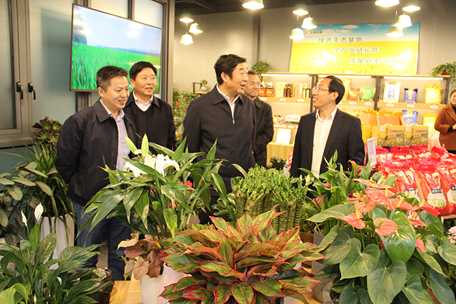 胡兆輝一行先后考察了蘇墾生態(tài)農(nóng)產(chǎn)品直銷中心和蘇墾知青之家。在直銷中心門店,胡兆輝詳細詢問了蘇墾大米、一宅一花經(jīng)營情況;在知青之家,與當(dāng)年的下放知青親切交談,向他們通報第二故鄉(xiāng)的發(fā)展情況。胡兆輝現(xiàn)場辦公,對金橋公司與蘇墾米業(yè)、蘇墾園藝緊密合作圍繞農(nóng)墾主業(yè)拓展經(jīng)營提出指導(dǎo)協(xié)調(diào)意見。