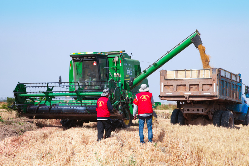 “三夏”大忙期間時(shí)間緊、任務(wù)重,隨著小麥陸續(xù)成熟,云臺(tái)未雨綢繆,黨員干部、管理人員、青年團(tuán)員等組成“三夏”生產(chǎn)志愿服務(wù)隊(duì),全部下沉至各大隊(duì)和生產(chǎn)區(qū),通過(guò)采取有力管理措施,科學(xué)調(diào)配人員和農(nóng)機(jī)力量,解決“三夏”生產(chǎn)問題,有效保障三夏”農(nóng)業(yè)生產(chǎn)工作。在田間地頭,志愿者們正在指揮著收割機(jī),安排組織統(tǒng)一收割,盡管烈日當(dāng)頭、汗流浹背,但大家投身“三夏”的熱情卻依然不減,確保應(yīng)收盡收、顆粒歸倉(cāng);在各大隊(duì)曬場(chǎng),黨員志愿者們充分發(fā)揮先鋒模范作用,大家搶抓天氣晴好有利時(shí)機(jī),拿起工具在曬場(chǎng)中揚(yáng)麥,并根據(jù)收割進(jìn)度、曬場(chǎng)壓力,制定了一套科學(xué)完整的烘干入庫(kù)方案,保障烘干工作“不斷環(huán)”,“三夏”農(nóng)忙“不掉鏈”;“三夏”期間安全生產(chǎn)最重要,志愿服務(wù)隊(duì)化身安全員,提前對(duì)機(jī)架人員進(jìn)行安全培訓(xùn),持續(xù)對(duì)麥田進(jìn)行巡邏排險(xiǎn),消除各類隱患,并分成4組小分隊(duì),夜間值班值守對(duì)秸稈禁燒情況進(jìn)行檢查,保證“不點(diǎn)一把火,不冒一股煙”,確保安全生產(chǎn)無(wú)事故。