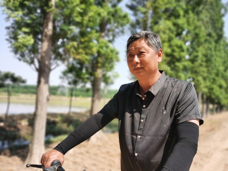 6月15日,一個(gè)黑臉、黑衣的身影忙碌在寶應(yīng)湖12隊(duì)田間地頭,他一會(huì)兒守庫(kù)房和工人一起運(yùn)肥料,一會(huì)兒站田頭檢查小秧栽插質(zhì)量,他就是12隊(duì)“當(dāng)家人”王國(guó)來(lái)。