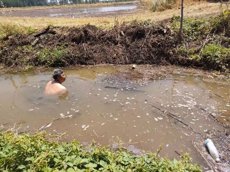 自十二隊(duì)收割以來(lái),王國(guó)來(lái)要在田頭,查收割損失率,看秸稈留茬高度;要在場(chǎng)頭,查登場(chǎng)小麥水分,看小麥籽粒飽滿度,協(xié)調(diào)糧食堆放、調(diào)運(yùn);要在路口,指揮拖拉機(jī)旋田作業(yè);要心系秧苗……6月8日,十二隊(duì)中閘嚴(yán)重缺水,經(jīng)查是排水渠堵塞。排水渠里腐爛的雜草漾著白沫,蚊蟲(chóng)嗡嗡亂撞,王國(guó)來(lái)毫不猶豫跳進(jìn)了水中。一遍、二遍,他一次次潛入水中,經(jīng)過(guò)1個(gè)多小時(shí)腳挑手掏,疏通堵塞,恢復(fù)排水順暢。