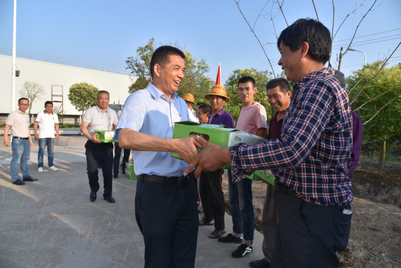 在倉儲(chǔ)部門口,公司黨委書記、董事長郭世平,黨委副書記、總經(jīng)理吳善河率公司領(lǐng)導(dǎo)班子成員為89名勞務(wù)外包一線工作人員送去了清甜涼爽的黃金瓜,同時(shí)親切地詢問了一線員工的身體狀況和工作情況,對(duì)他們的辛勤付出表示感謝,并千萬叮囑大家炎夏期間注意避暑、保重身體,合理安排工作時(shí)間,避開高溫酷暑時(shí)段,也希望他們能夠深刻感受到公司黨委的人文關(guān)懷和“在廠如同在家”的幸福感。