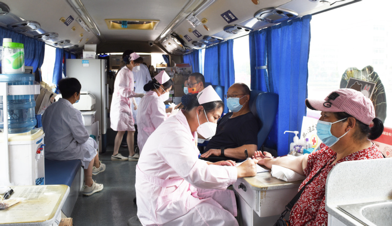 活動中,獻血人士在工作人員和志愿者的指引下,秩序井然,填表、體檢、獻血,以實際行動奉獻愛心。