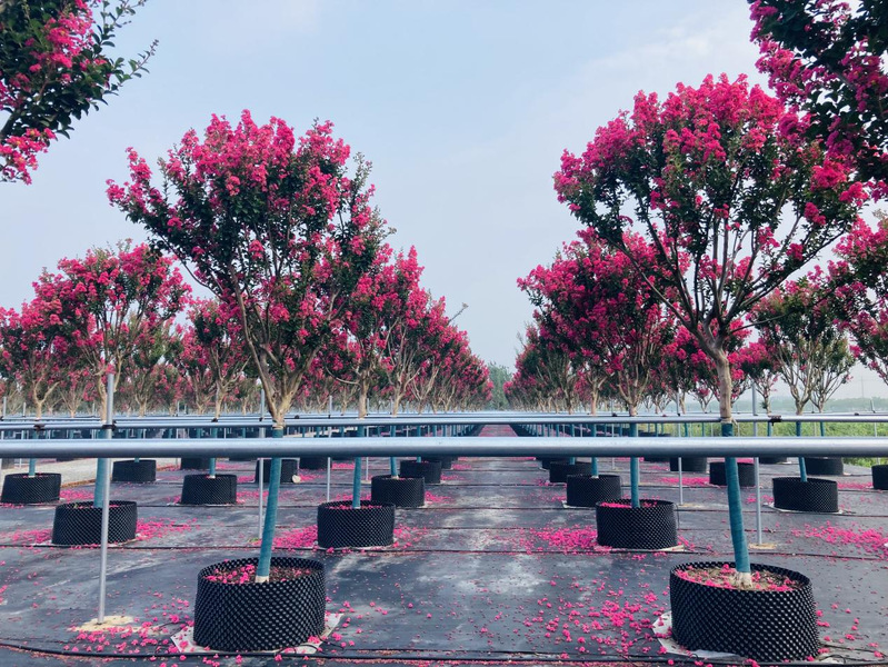 新洋林業(yè)公司容器苗三期當(dāng)下正是一幅花開似霞的盛景,紫薇花團(tuán)團(tuán)簇簇掛滿枝頭,相當(dāng)奪目。拳頭產(chǎn)品“四川紅”紫薇是農(nóng)場(chǎng)公司黨委和林業(yè)公司4月份頂著疫情的壓力,積極爭(zhēng)取引進(jìn)的產(chǎn)品,到了7月份便成為了附近居民的網(wǎng)紅打卡產(chǎn)品,獲得了居民們的一致好評(píng)和稱贊。其花期極長(zhǎng),從6月一直持續(xù)到10月,宋代楊萬里贊曰:“誰道花無紅百日,紫薇常放半年花。”明代薛蕙詩云:“紫薇開最久,爛漫十旬期?!币虼?,紫薇也有“百日紅”之稱。