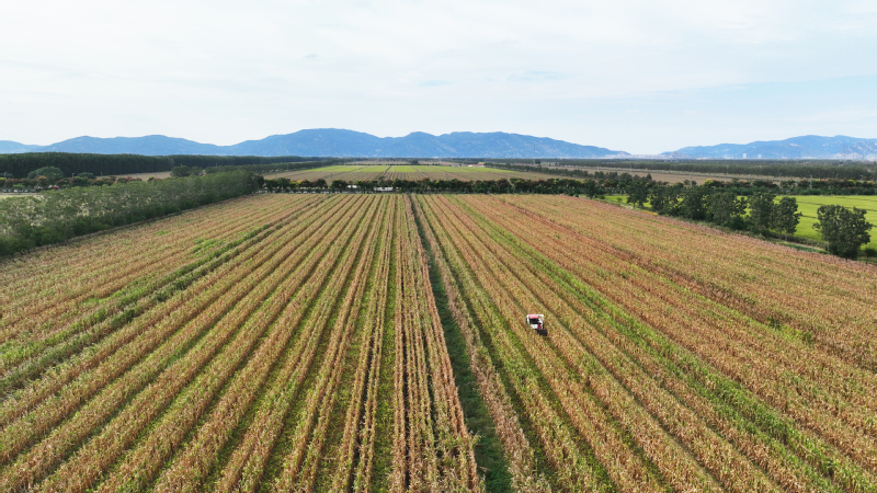今年江蘇農(nóng)墾大豆玉米帶狀復合種植面積達12萬畝,目前大豆玉米已經(jīng)陸續(xù)成熟。圖為蘇墾農(nóng)發(fā)東辛分公司農(nóng)機在田間收割大豆。