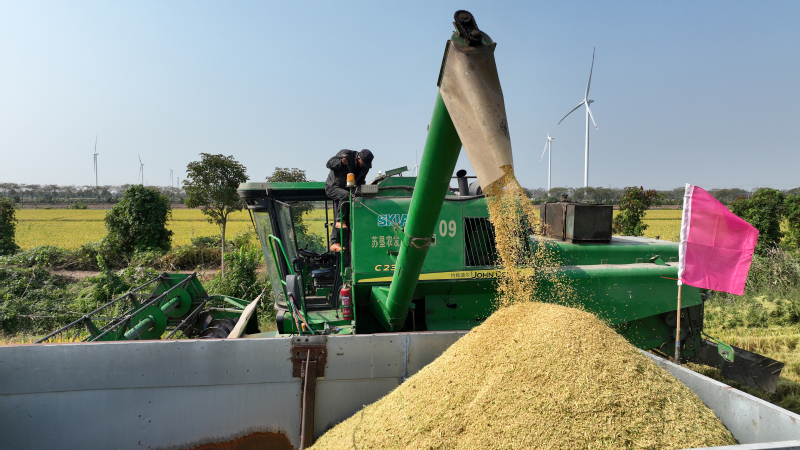 收割現(xiàn)場,蘇墾農(nóng)發(fā)新洋分公司嚴(yán)格收割質(zhì)量監(jiān)督,把機(jī)械減損作為糧食增產(chǎn)的重點,加大收割質(zhì)量檢查力度,減少收割損失,實現(xiàn)秋糧顆粒歸倉?!拔覀兠芮嘘P(guān)注天氣情況和水稻成熟度,統(tǒng)籌安排,堅持質(zhì)量第一,進(jìn)度第二,努力做到成熟一塊收割一塊,穩(wěn)步推進(jìn)收割進(jìn)度。”農(nóng)業(yè)中心負(fù)責(zé)人介紹。蘇墾農(nóng)發(fā)新洋分公司立足“前期‘揀’收、中期‘穩(wěn)’收、后期‘搶’收”的原則,充分利用秋收早期溫度高,有利晾曬、烘干的條件,適時收、曬、烘,為秋播及時騰茬,確保11月6日前完成秋播田塊收割任務(wù)。