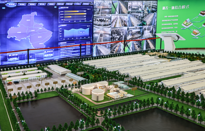 生態(tài)化發(fā)展加速轉型。牧場智慧生態(tài)系統(tǒng)中,污水循環(huán)管理設備包含牧場污水管路3D圖與污水監(jiān)測點位信息,做到實時監(jiān)測牧場污水指標,并將數(shù)據(jù)同步上傳至環(huán)保局,確保牧場水質監(jiān)管到位。沼氣發(fā)電系統(tǒng)將標準化工藝處理糞污產生的沼氣,用于發(fā)電后接入國家電網,沼液利用后的沼渣作為奶牛牛床墊料的生產原料,不僅成本低,更大大降低了養(yǎng)殖風險。同時在場區(qū)配備廢氣檢測設備監(jiān)測養(yǎng)殖氣體環(huán)境,配備消防監(jiān)控設備監(jiān)測飼草區(qū)與沼氣發(fā)電區(qū)域煙火狀況。智能生態(tài)系統(tǒng)采取糞污固體發(fā)酵、沼氣烘干回床、沼液還田方式,實現(xiàn)“變廢為寶”。對牧場糞污發(fā)酵后的液位進行采集,經過無害化處理后的沼液通過預設專用管道,在卷盤式噴灌機的運轉下自動噴灑在專屬消納用地的田間作物上,形成種養(yǎng)一體循環(huán),有效提高了糞污綜合利用水平。