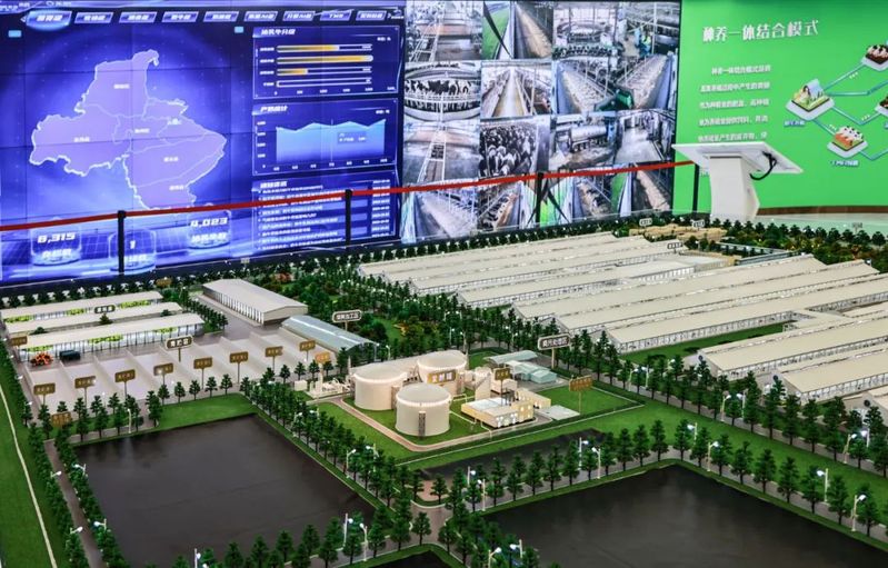 生態(tài)化發(fā)展加速轉(zhuǎn)型。牧場智慧生態(tài)系統(tǒng)的污水循環(huán)管理設(shè)備包含牧場污水管路3D圖與污水監(jiān)測點位信息,實時監(jiān)測牧場污水指標(biāo),并將數(shù)據(jù)同步上傳至環(huán)保部門,確保牧場水質(zhì)監(jiān)管到位。沼氣發(fā)電系統(tǒng)將標(biāo)準(zhǔn)化工藝處理糞污產(chǎn)生的沼氣用于發(fā)電,沼液利用后的沼渣作為牛床墊料的生產(chǎn)原料,不僅成本低,還有效降低了養(yǎng)殖風(fēng)險。同時在場區(qū)配備廢氣檢測設(shè)備監(jiān)測養(yǎng)殖氣體環(huán)境,配備消防監(jiān)控設(shè)備監(jiān)測飼草區(qū)與沼氣發(fā)電區(qū)域煙火狀況。智能生態(tài)系統(tǒng)采取糞污固體發(fā)酵、沼氣烘干回床、沼液還田方式,實現(xiàn)“變廢為寶”。對牧場糞污發(fā)酵后的液位進(jìn)行采集,經(jīng)過無害化處理后的沼液通過預(yù)設(shè)專用管道,在卷盤式噴灌機(jī)的運轉(zhuǎn)下自動噴灑在專屬消納用地的田間作物上,形成種養(yǎng)一體循環(huán),有效提高了糞污綜合利用水平。