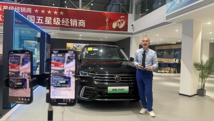 “不是任何人都適合面對鏡頭,所有銷售顧問必須輪播上崗,通過全員直播選拔優(yōu)秀主播人員和銷售支持?!笔袌鰧n}會議上,蘇舜對直播營銷的人員架構和主播的選拔提出了明確要求。蘇舜年輕人居多,他們不僅充滿活力,而且對新鮮事物感興趣,公司從中挑選出形象好、口才出眾、專業(yè)能力強等方面均較為優(yōu)異的員工,經過培訓后組成主播團,輪流在網絡上展示自我,試播通過后再擇優(yōu)確定最終人選,讓員工既下得了車間,還上得了直播間。目前,公司11家4S店直播營銷團隊均為“1+1+3”的架構(即:1名專職主播、1名兼職主播和邀約專員、銷售顧問、服務顧問3名銷售支持人員),形成類似DCC的直播小組協(xié)同作戰(zhàn),主播人員中既有企業(yè)一線員工,也有基層管理崗位人員。
