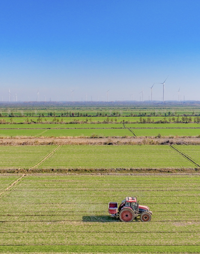 12月9日,江蘇省鹽城市射陽縣的一座農(nóng)場內(nèi),農(nóng)機(jī)正在進(jìn)行田間管理作業(yè)。入冬以來,農(nóng)場搶抓晴好天氣,實(shí)施綜合田管,為夏糧增產(chǎn)豐收打好基礎(chǔ)。張偉生攝(中經(jīng)視覺)