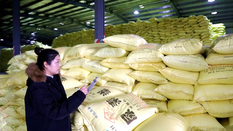 2月6日,蘇墾農(nóng)服東辛分公司倉儲中心內(nèi),倉庫保管員正在清點春耕農(nóng)資,為春耕做好儲備。