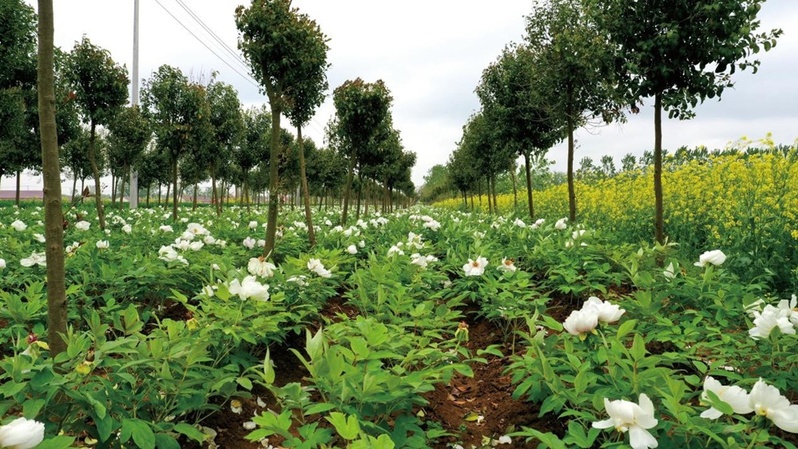 為了讓“綠葉子”變成“金票子”,黃海農(nóng)場(chǎng)科學(xué)利用林間隙地,大力發(fā)展林下經(jīng)濟(jì),在一排排女貞樹(shù)下,油用牡丹茁壯成長(zhǎng)?!安捎门懞陀陀媚档ち珠g套種模式,能相互取長(zhǎng)補(bǔ)短,實(shí)現(xiàn)提產(chǎn)量、增效益、保生態(tài)等多贏目標(biāo)。”農(nóng)場(chǎng)林業(yè)中心主任王虎義說(shuō)。