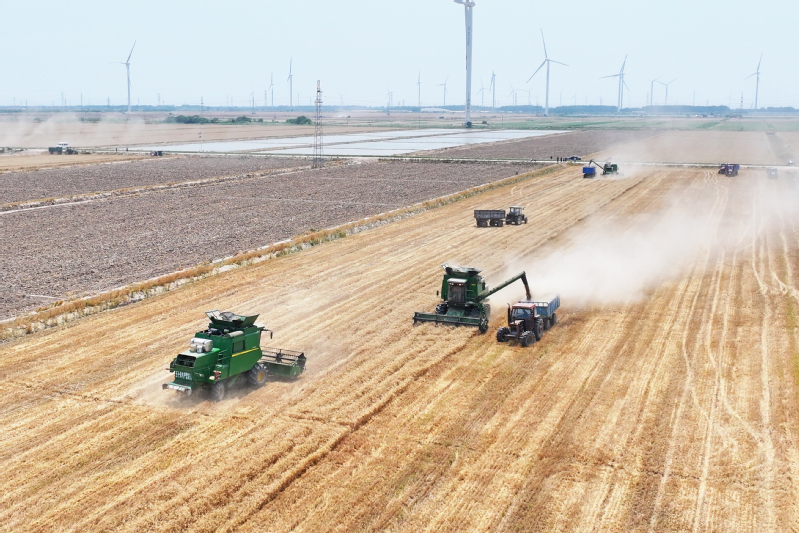 2025年5月29日,鹽城射陽縣江蘇農墾臨海農場順泰生產區(qū)麥浪涌動,大型聯合收割機轟鳴作業(yè),率先拉開當地夏收小麥序幕。近年來,農場黨委以墾地合作推動發(fā)展,通過技術賦能與鹽堿地改良,昔日鹽堿地蛻變?yōu)椤皣嵓Z田”,為鄉(xiāng)村振興打造國有農業(yè)新樣板。