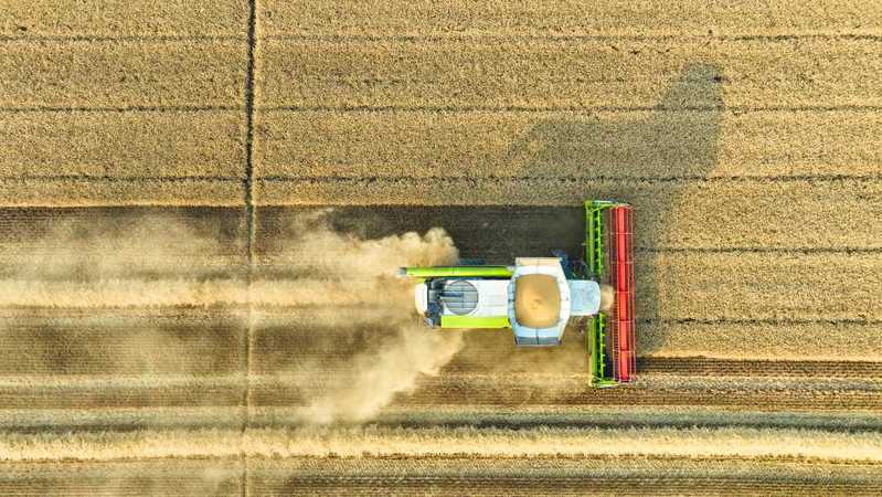 6月4日,江蘇省鹽城市射陽(yáng)縣,江蘇農(nóng)墾新洋農(nóng)場(chǎng)組織大型聯(lián)合收割機(jī)搶收小麥,確保顆粒歸倉(cāng)。