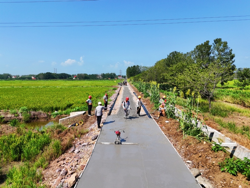 9月9日,江蘇省連云港市海州區(qū)的江蘇農(nóng)墾崗埠農(nóng)場(chǎng)高標(biāo)準(zhǔn)農(nóng)田建設(shè)現(xiàn)場(chǎng),施工單位搶抓晴好天氣,加緊推進(jìn)高標(biāo)準(zhǔn)農(nóng)田配套水泥路建設(shè),切實(shí)推動(dòng)農(nóng)田道路提檔升級(jí),促進(jìn)農(nóng)業(yè)發(fā)展。作者:徐衛(wèi) 攝