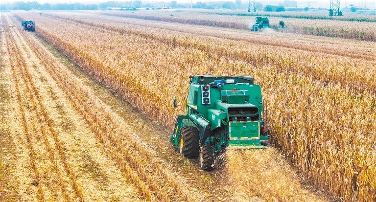 10月15日,農機手駕駛收割機在江蘇省連云港市云臺農場小汪生產區田間收割玉米。該市整合63個烘干中心,295臺烘干機開足馬力,日烘干能力可達1.02萬噸,確保秋糧應收盡收。 王健民攝