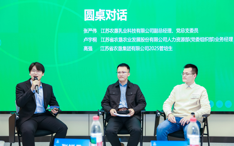 在“從校園人到農(nóng)墾人”成長(zhǎng)分享環(huán)節(jié),南京農(nóng)業(yè)大學(xué)校友代表蘇墾乳業(yè)副總經(jīng)理張嚴(yán)偉、蘇墾農(nóng)發(fā)人力資源部業(yè)務(wù)經(jīng)理盧宇桐、集團(tuán)公司2025屆管培生高強(qiáng)分別講述了他們?cè)诮K農(nóng)墾的職業(yè)軌跡與心路歷程。張嚴(yán)偉更結(jié)合自己擔(dān)任面試官的經(jīng)驗(yàn),向?qū)W弟學(xué)妹送出“自信、真誠(chéng)、專業(yè)”六字面試秘籍,并鼓勵(lì)大家堅(jiān)守農(nóng)業(yè)人的理想與初心。