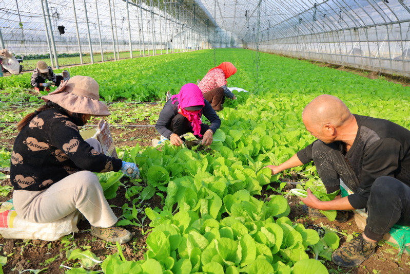 10月23日,江蘇省連云港市海州區(qū)的江蘇農(nóng)墾崗埠農(nóng)場,訂單蔬菜喜獲豐收。菜農(nóng)們在大棚里采收整理新鮮的蔬菜,并進行打包稱重,田間地頭一片繁忙景象。近年來,當?shù)卮罅Πl(fā)展規(guī)?;笈锸卟朔N植,采取“市場+訂單+農(nóng)戶”的方式,促進菜農(nóng)增收。