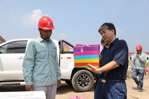 8月8日上午,烈日當頭,酷暑難耐,在東辛農(nóng)場有限公司銀羽住宅新區(qū)供電線路鋪設現(xiàn)場,集團公司工會主席佟曉廷一行在東辛黨委書記韓中書、紀委書記王緒國、