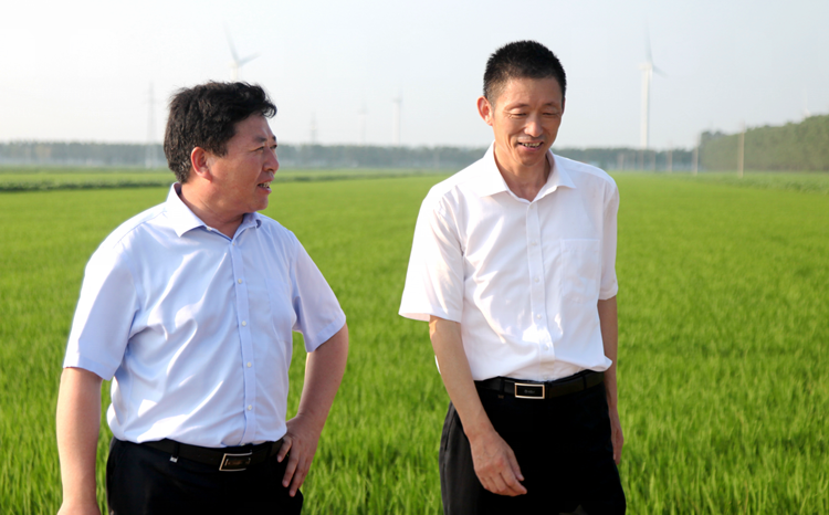 8月5日,集團公司黨委委員、蘇墾農(nóng)發(fā)股份公司總裁蘇志富一行到蘇墾農(nóng)發(fā)股份公司黃海分公司檢查指導工作。黃海分公司總經(jīng)理賀在銳、副總經(jīng)理沈進松陪同介紹情況?! √K志富冒著酷暑深入到黃海分公司水稻生產(chǎn)一