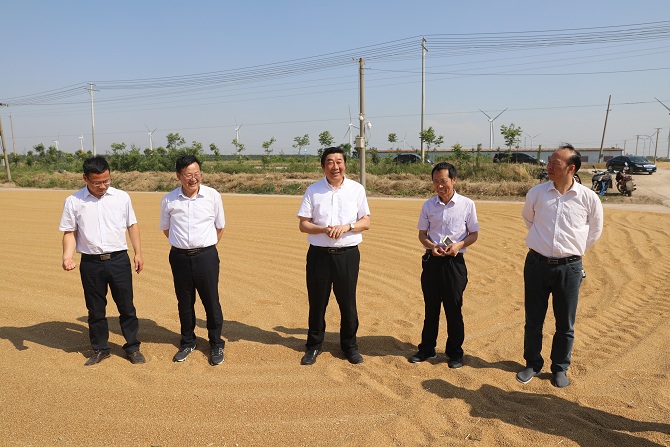 6月13日下午,集團(tuán)公司總經(jīng)理、蘇墾農(nóng)發(fā)股份有限公司董事長(zhǎng)胡兆輝到濱淮檢查指導(dǎo)工作。濱淮領(lǐng)導(dǎo)班子李德利、傅龍光、李文忠、馬傳武陪同并匯報(bào)工作?! 『纵x一行先后深入七大隊(duì)收割現(xiàn)場(chǎng)、第三生產(chǎn)區(qū)場(chǎng)頭、