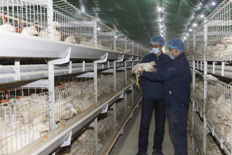 1月12日晚8點(diǎn)半,雖然溫度已降至零下,料峭寒意卻擋不住東米人的火熱干勁。大家快速地做好苗雞搬運(yùn)、分揀、入籠等工作,減少溫差帶來的雞群應(yīng)激反應(yīng)。隨著最后一車雞苗裝卸完畢,新年首批93萬羽苗雞順利入住新家,為東辛東米公司奮力奪取首季“開門紅”、完成全年目標(biāo)任務(wù)打牢堅(jiān)實(shí)基礎(chǔ)。走進(jìn)現(xiàn)代化籠養(yǎng)雞舍,自動(dòng)化喂食飲水裝置應(yīng)有盡有,5列3層“樓房”整齊排布,籠內(nèi)已提前備好“營養(yǎng)餐”,工人們對剛運(yùn)送進(jìn)來的雛雞逐一進(jìn)行“體檢”,并按照每籠82羽苗雞標(biāo)準(zhǔn),小心翼翼地分揀入籠。在34度恒溫的新家中,雛雞很快適應(yīng)新環(huán)境,開始愉快地自主進(jìn)食?!霸谶@里可以實(shí)現(xiàn)分區(qū)調(diào)節(jié)雞舍溫度、濕度、風(fēng)量等,各項(xiàng)關(guān)鍵數(shù)據(jù)一覽無遺。自從采用精準(zhǔn)數(shù)字化飼養(yǎng)模式后,不僅養(yǎng)雞效率提高了,還節(jié)約了人力成本,肉雞養(yǎng)殖更加科學(xué)高效?!奔夹g(shù)員葉林來一邊介紹一邊熟練操作著智能化中控系統(tǒng)?!靶碌囊荒暌馕吨碌拈_始。東升雞場在肉雞養(yǎng)殖技術(shù)上不斷總結(jié)經(jīng)驗(yàn)與不足,持續(xù)強(qiáng)化內(nèi)部管理,通過多組實(shí)驗(yàn)數(shù)據(jù)分析,將在舍內(nèi)通風(fēng)頻次和溫度把控上進(jìn)一步調(diào)整和細(xì)化,調(diào)控好內(nèi)部環(huán)境,防止細(xì)菌滋生,降低肉雞淘汰率,力爭出欄肉雞各項(xiàng)指標(biāo)優(yōu)于市場標(biāo)準(zhǔn)?!睎|升雞場場長李東輝滿懷信心地