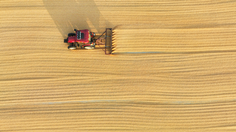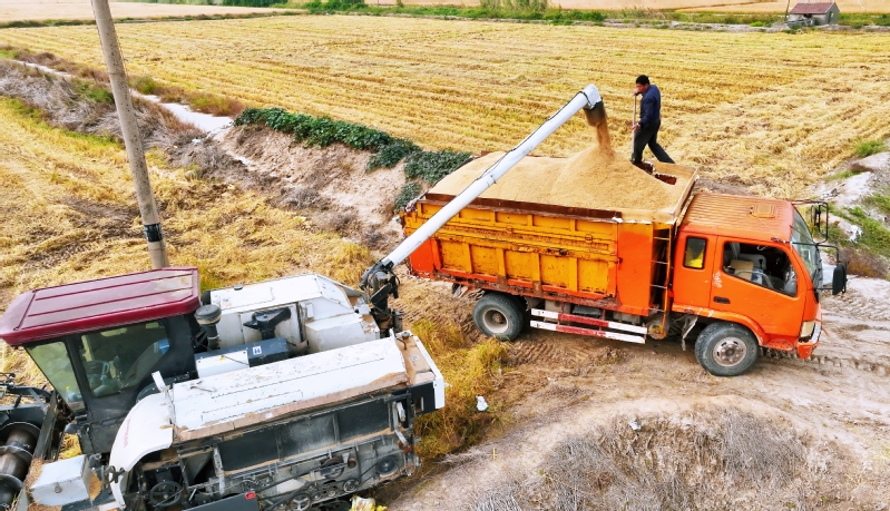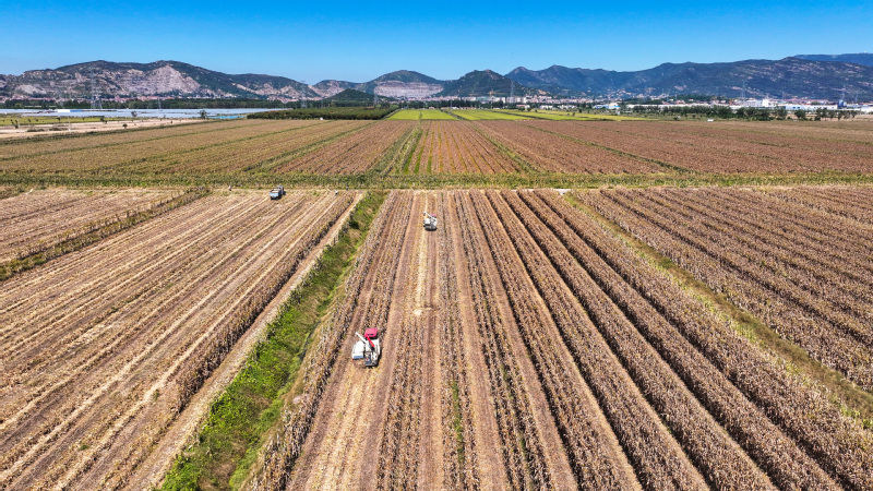 時下,正式秋收好時節(jié),在蘇墾農(nóng)發(fā)云臺分公司廣袤的田野上,豆莢搖曳如鈴,玉米金黃飽滿,伴隨著收割機(jī)的轟鳴聲,蘇墾農(nóng)發(fā)云臺分公司1.1萬畝玉米大豆復(fù)合種植“喜開鐮”,工作人員搶抓晴好天氣,及時收割、晾曬,開始了緊張而有序的收割工作。蘇墾農(nóng)發(fā)云臺分公司緊盯全年糧食生產(chǎn)目標(biāo)任務(wù),按照江蘇省農(nóng)墾集團(tuán)的“五統(tǒng)一”模式為標(biāo)準(zhǔn),通過“4+4”復(fù)合種植模式,充分發(fā)揮高位作物玉米的邊行優(yōu)勢,擴(kuò)大低位作物大豆受光空間,實現(xiàn)作物協(xié)同共生、一季雙收。為了抓好今年“三秋”工作,蘇墾農(nóng)發(fā)云臺分公司制定了各大隊組織分工、產(chǎn)量目標(biāo)、成本管控、生產(chǎn)進(jìn)度、作業(yè)質(zhì)量、田間苗情、病蟲草害控制、場頭管理與糧食入庫銷售、質(zhì)控平臺運行、農(nóng)業(yè)面源污染治理、藥肥雙減增效、安全生產(chǎn)等12項“三秋”考核內(nèi)容,并多次開展技術(shù)培訓(xùn),為抓好“三秋”工作提供組織保證、考核目標(biāo)和技術(shù)標(biāo)準(zhǔn)。“看樣子,今年又是一個豐收年?!币淮箨犼犻L王飛抓起一把玉米說?!伴_始作業(yè)前,我們對所有農(nóng)機(jī)具進(jìn)行了安全自查,確保收割機(jī)狀態(tài)良好,在玉米收割過程中我們嚴(yán)格按照玉米收獲作業(yè)質(zhì)量管理規(guī)程,真正實現(xiàn)玉米籽粒損失率要小于等于百分之二,籽粒破損率要小于等于百分之五的目標(biāo)任務(wù)?!?/div>