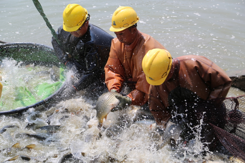入夏以來,崗埠迎來水產(chǎn)品捕撈銷售的黃金季節(jié)。7月4日一大早,崗埠農(nóng)場公司北漁場的養(yǎng)殖塘口便響起了“起網(wǎng)”的號子聲,隨著工人們相互配合,一起發(fā)力將巨型漁網(wǎng)緩緩收攏,一條條活蹦亂跳的大魚出現(xiàn)在人們的視野中,平靜的水面上也頓時水花飛濺,大魚歡快地躍出水面,一片人歡魚躍的豐收景象?!?024年上半年,養(yǎng)殖中心緊跟市場行情,連續(xù)開展捕魚銷售作業(yè),爭取效益最大化?!痹诓稉片F(xiàn)場,中心負責人單懷亞一邊指揮分揀水產(chǎn)品,一邊介紹。養(yǎng)殖中心充分發(fā)揮“淮河牌”水產(chǎn)品品牌優(yōu)勢和無公害水產(chǎn)品養(yǎng)殖規(guī)?;藴驶?、高效化的優(yōu)勢,促進水產(chǎn)養(yǎng)殖健康發(fā)展。今年以來,水產(chǎn)公司加快調(diào)整養(yǎng)殖模式,優(yōu)化養(yǎng)殖結(jié)構,采取“輪捕輪放,按需銷售”管理模式,準確把握市場行情,確保全年都有鮮魚上市?!懊磕赀@個時候是水產(chǎn)銷售旺季,近期北漁場和南漁場將先后進行水產(chǎn)捕撈銷售。我們時刻關注市場動向,爭取銷售效益最大化?!眴螒褋啽硎?,養(yǎng)殖中心積極對接市場,努力提高水產(chǎn)銷售效益。據(jù)悉,夏季捕撈的魚獲以鯉魚、花鰱、白鰱為主,最重的鰱魚有15斤以上。僅7月4日當天,捕撈銷售水產(chǎn)品28000斤,銷售額14萬元。下一步,養(yǎng)殖中心將繼續(xù)利用好水資源優(yōu)勢,結(jié)合產(chǎn)業(yè)發(fā)