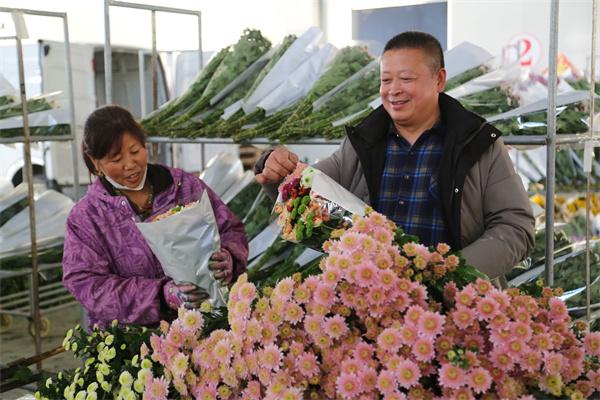 走進富民農業(yè)科技園14號大棚,雛菊鮮切花成熟上市,工人們正在溫室大棚里挑選裁切雛菊花。在包裝車間內,工人們正在整理數以萬計的雛菊,去掉多余枝葉,整理包裝成一束束精美的花束,不遠處的三大排貨架上,全部都是五顏六色的雛菊?!拔覀儓@區(qū)種植了5個大棚的雛菊,約二三十個品種共15萬枝,現在相繼進入采摘期。現在園區(qū)一邊采摘雛菊,一邊忙著整理包裝,準備供應山東客商?!眻@區(qū)副主任魏建東介紹說,剛上市的雛菊每天采摘量在2000枝以上,往后會越來越多,不斷滿足市場需求。隨著社會經濟的發(fā)展和人們生活水平的提高,鮮花逐漸成為更多人裝扮生活的必需品,消費理念的改善促使鮮切花品種結構日趨豐富。其中,雛菊以其色彩繁多、花型多樣、瓶插期長、耐運輸、清新動人的花姿,受到廣大消費者喜愛追捧。崗埠農場公司緊盯市場需求,大力發(fā)展多元鮮切花種植,引進新品種、新技術,積極探索發(fā)展新路徑新模式,走特色鮮花發(fā)展之路?!爱斍?我們園區(qū)大力發(fā)展鮮切花產業(yè),從種植、包裝、銷售逐步升級,進一步轉變經營模式,提高產業(yè)效能。在提高集體經濟效益的同時,發(fā)揮示范帶頭作用,為花農的種植經營創(chuàng)造更有利條件,在增加場域就業(yè)上做文章,爭取實現社會效益的最大
