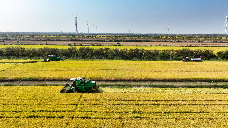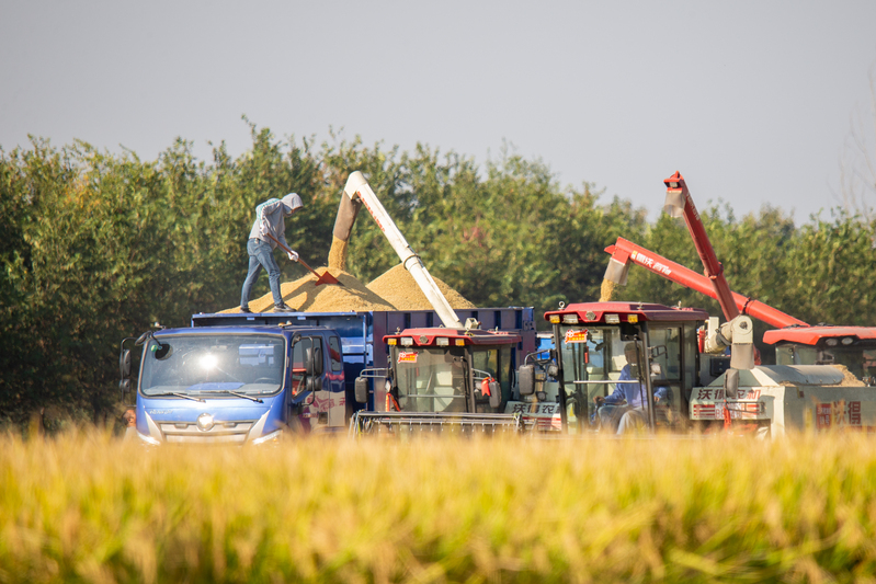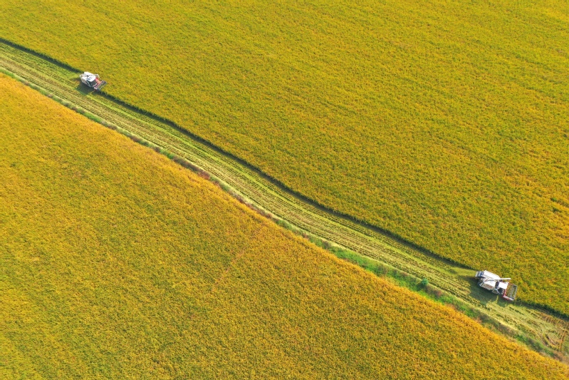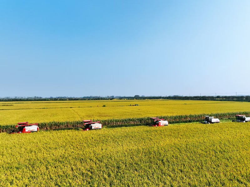 秋風(fēng)拂過(guò),稻菽飄香。眼下,正值水稻收割季節(jié),云臺(tái)大地一片金黃。10月22日,蘇墾農(nóng)發(fā)云臺(tái)分公司6000余畝水稻開(kāi)鐮收割,在田間奏響“豐收曲”。機(jī)械轟鳴,沉甸甸的稻穗被攬入“懷中”,收割、脫粒、裝車(chē),飽滿(mǎn)的谷粒傾瀉而下,被裝進(jìn)運(yùn)糧車(chē)?yán)?,工作人員美滋滋地看著田間的稻谷被收割殆盡,空氣中彌漫著稻谷的醇香。“今年我們的水稻長(zhǎng)勢(shì)好、產(chǎn)量高,和我們以‘繡花功夫’狠抓精細(xì)化管理是分不開(kāi)的。”云臺(tái)農(nóng)場(chǎng)公司黨委副書(shū)記、蘇墾農(nóng)發(fā)云臺(tái)分公司總經(jīng)理宋光鋒在收割現(xiàn)場(chǎng)會(huì)滿(mǎn)意地說(shuō)道。鄉(xiāng)村振興的核心是產(chǎn)業(yè)興旺,現(xiàn)代農(nóng)業(yè)是云臺(tái)產(chǎn)業(yè)興旺的中堅(jiān)力量。近年來(lái),蘇墾農(nóng)發(fā)云臺(tái)分公司堅(jiān)持標(biāo)準(zhǔn)化生產(chǎn)方式,將技術(shù)、人才、信息等資源要素“引”向農(nóng)業(yè)、“流”向企業(yè),充分發(fā)揮國(guó)有農(nóng)業(yè)企業(yè)帶頭作用,為農(nóng)業(yè)產(chǎn)業(yè)發(fā)展注入新的活力。據(jù)了解,今年“三秋”,云臺(tái)將投入小型收割機(jī)20臺(tái)用于水稻收割,并投入播種機(jī)13臺(tái),預(yù)計(jì)本月28日全部收割完畢,稻茬小麥將于31日播種結(jié)束。下一步,云臺(tái)將扎實(shí)做好秋收秋種秋管工作,牢牢守住“糧袋子”,為推進(jìn)鄉(xiāng)村振興和糧食安全貢獻(xiàn)云臺(tái)力量。